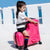 This ride-on suitcase allows a child to sit while the luggage is pulled, combining storage and seating in one travel accessory. It provides a practical option for families moving through airports or travel areas.